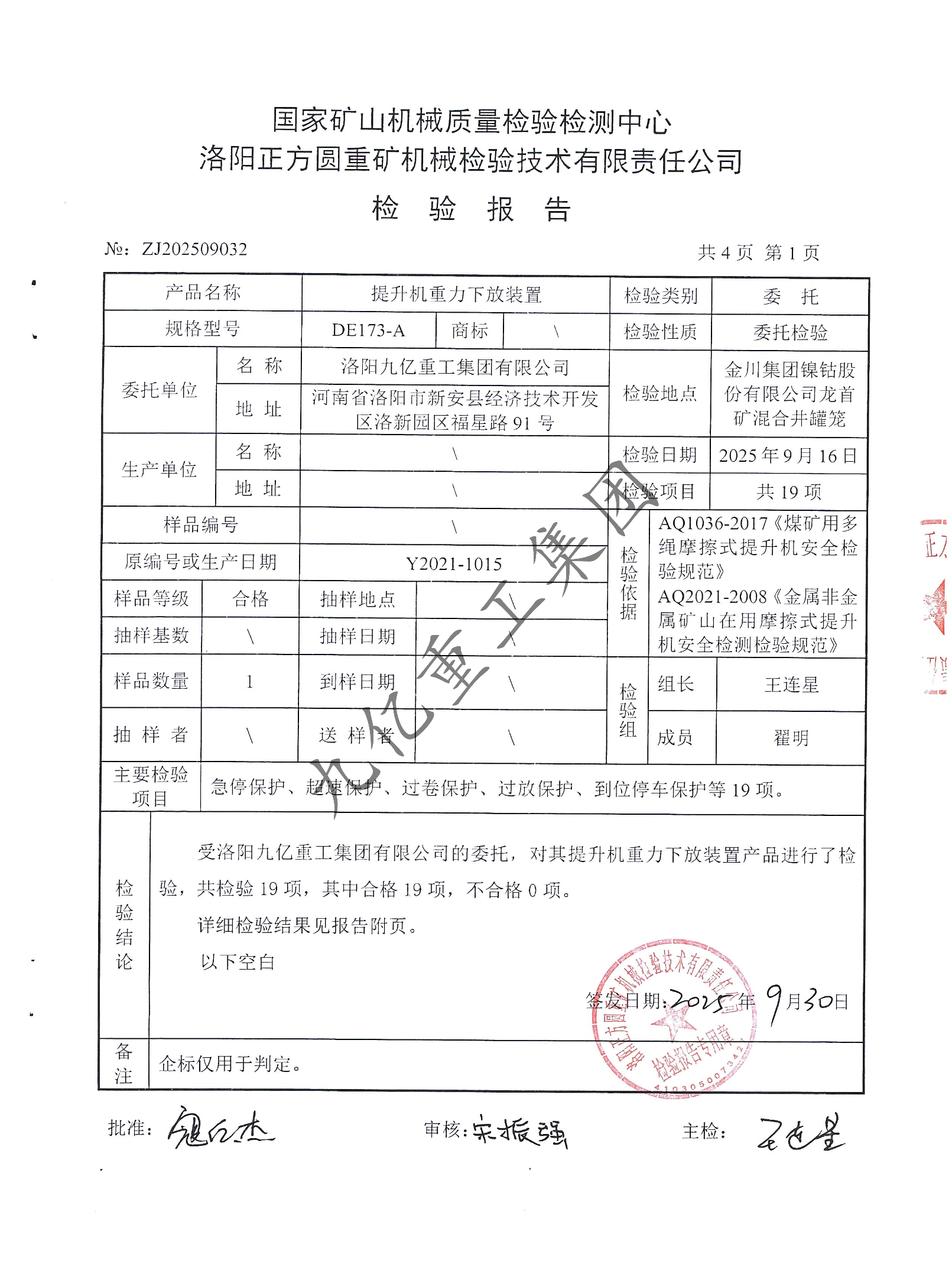 提升機重力下放裝置檢驗報告