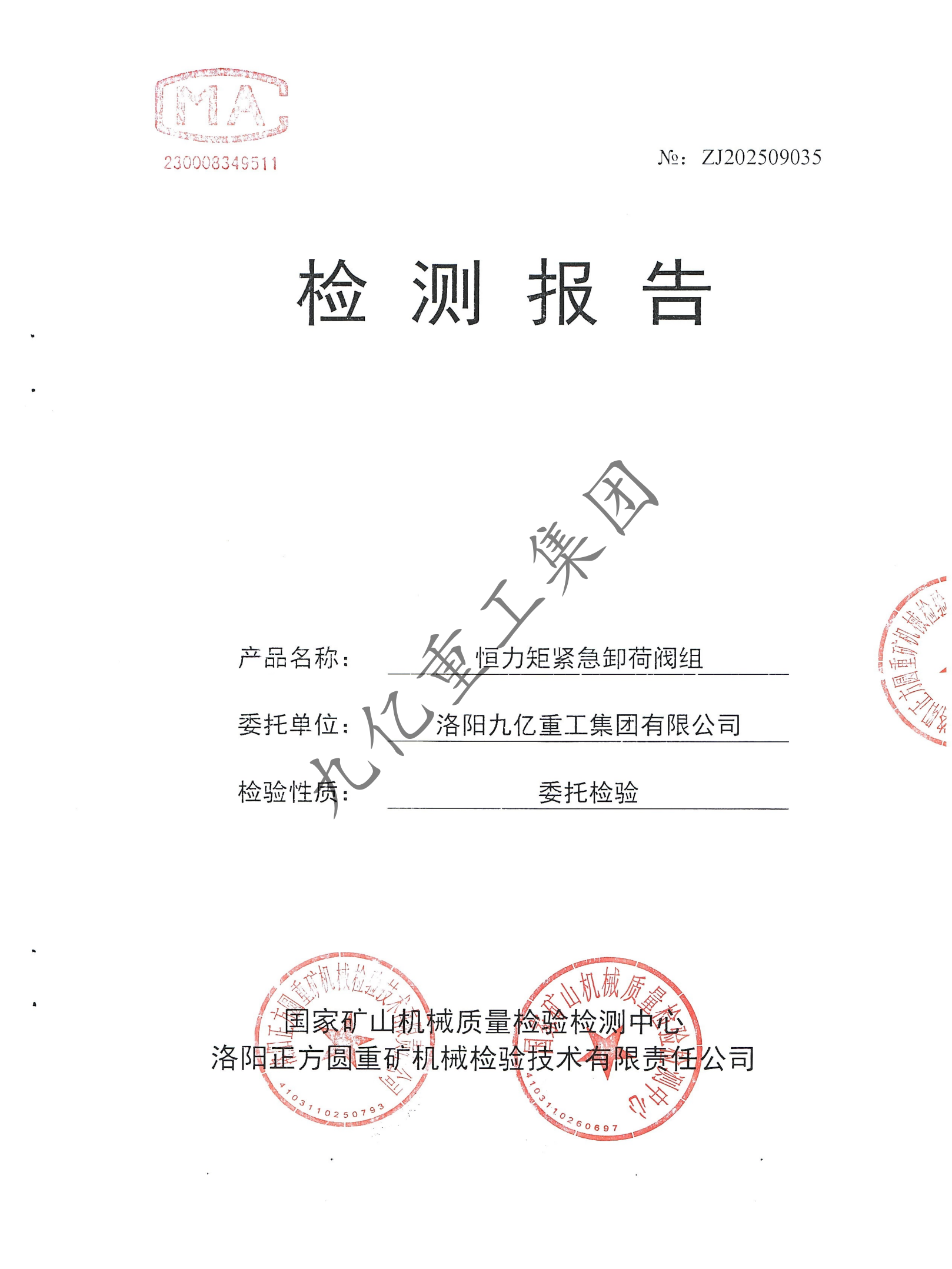 恒力矩緊急卸荷閥組檢驗(yàn)報(bào)告
